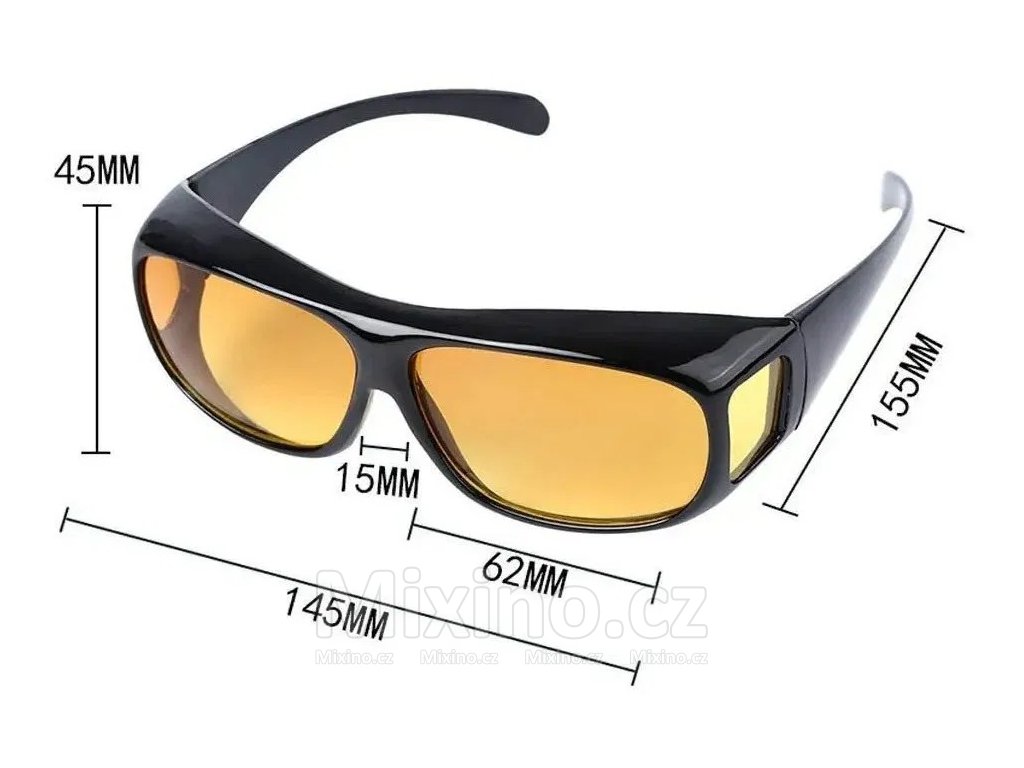 - Barva: černé lakované obroučky, skla ve žlutém odstínu (na noc) a tmavé (na den)
