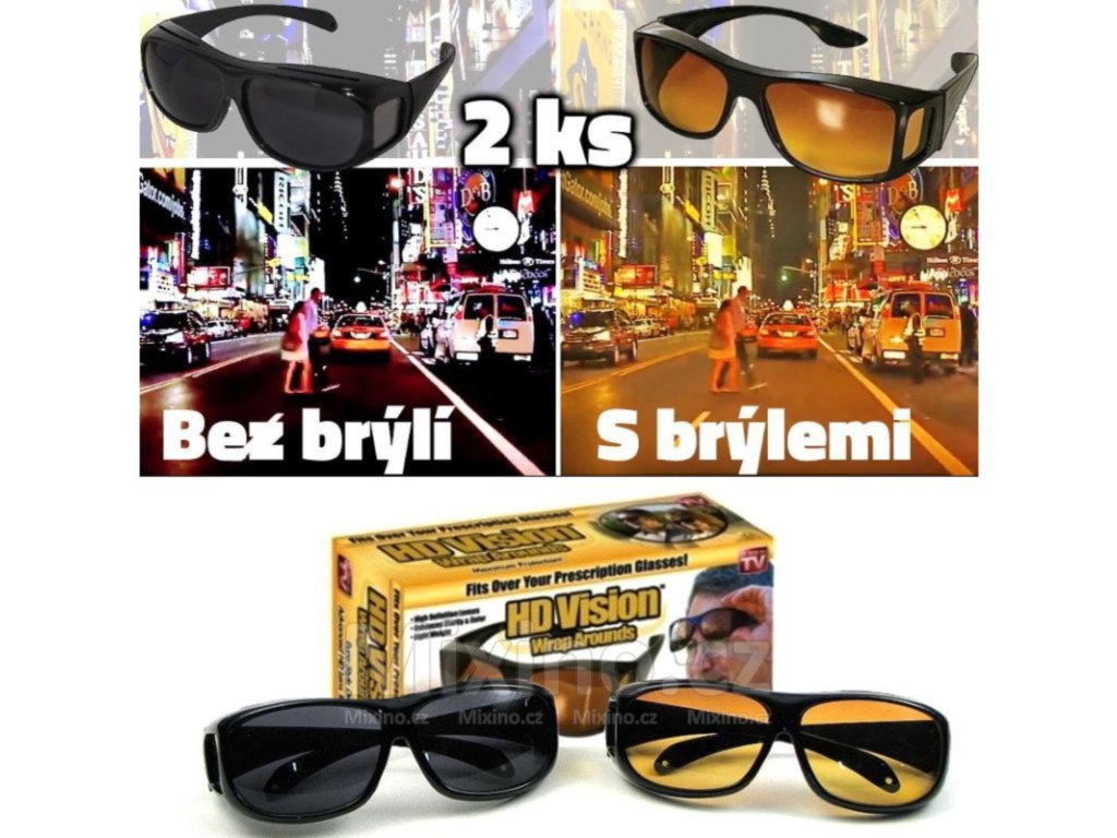 Balení obsahuje jak denní brýle, které chrání před slunečním zářením, tak noční brýle, které minimalizují oslnění od protijedoucích vozidel.